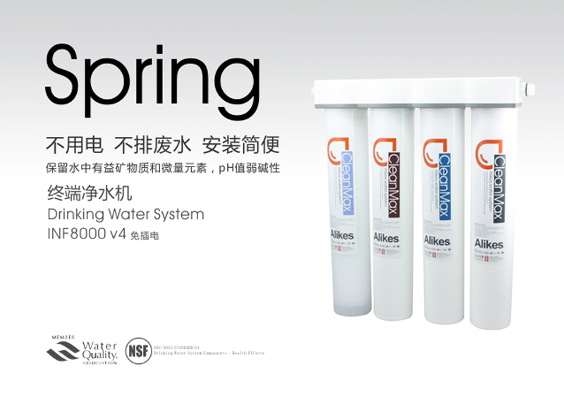 Alikes終端凈水機(jī)利用市政管道自來(lái)水的壓力驅(qū)動(dòng)水流,通過(guò)獨(dú)特的濾芯來(lái)達(dá)到生飲的標(biāo)準(zhǔn)。安裝簡(jiǎn)易,即插即飲。去除水中的泥沙、******、鐵銹、懸浮物、有害重金屬、余氯異色和異味。不需用電,不產(chǎn)生廢水,即用即飲,不需儲(chǔ)水罐避免二次污染 , 確保飲水健康。是凈水機(jī)中的高端產(chǎn)品,適用于咖啡店,水吧商用,別墅、******商務(wù)樓、******住宅樓家用。滿(mǎn)足高端人群對(duì)高品質(zhì)飲水的需求 。